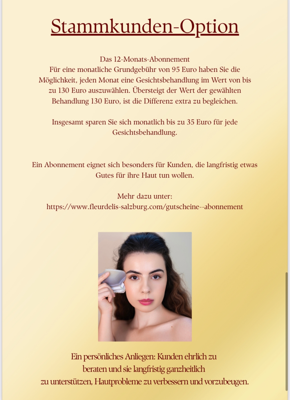 Bitte beachten Sie, besonders bei Hautproblemen: Langfristige Veränderungen benötigen eine korrekte Heimroutine. Die Versorgung endet nicht nach Ihrem Termin. Der Fokus liegt darauf, die Kunden langfristig zu unterstützen.